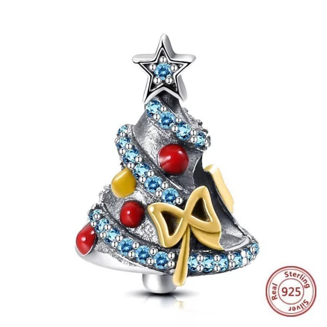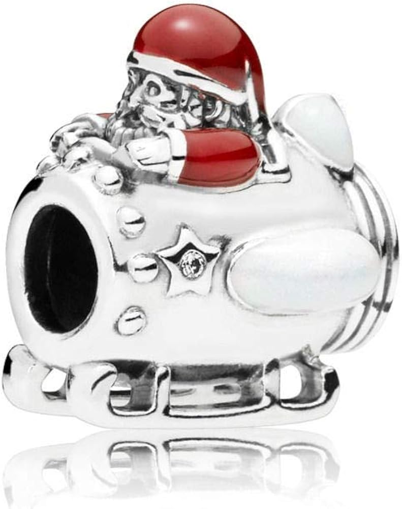 . The Sparkling Christmas Tree Dangle Charm features a Christmas tree design with green enamel and clear cubic zirconia stones, while the Christmas Sleigh 2023 Dangle Charm showcases a sleigh design with red and blue enamel, snowflake imprints, and the year 2023 engraved on the back Glittery red and blue enamel brings even more shine to the gifts, while snowflake imprints cover the bail of this sterling silver dangle charm.